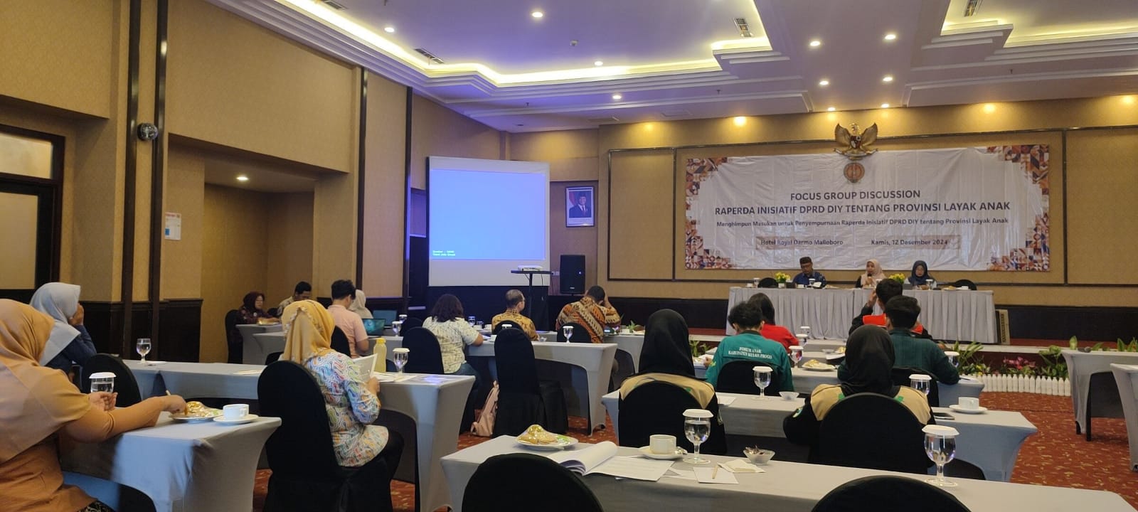 Dewan Perwakilan Rakyat Daerah (DPRD) Daerah Istimewa Yogyakarta (DIY) menyelenggarakan Focus Group Discussion (FGD) mengenai Rancangan Peraturan Daerah (Raperda) Provinsi Layak Anak pada Kamis, 13 Desember 2024. Acara ini berlangsung di Hotel Royal Darmo, Malioboro, Yogyakarta, dengan dihadiri sekitar 40 peserta yang terdiri dari perwakilan pemerintah, lembaga masyarakat, akademisi, media massa, dan dunia usaha.